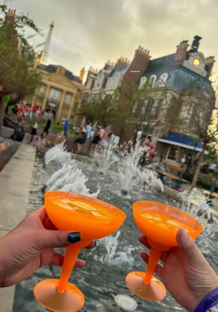 During a rainy day in Epcot, taking shelter in one of the stores, we saw a lady with one of these and asked her what they were and where to get them. She recommended to get them but without an extra shot since it took away the flavor of the drink. When she left, BadStoryTeller and I both looked at each other and said, “We are getting it with an extra shot right? Of course we are!” Glad we didn’t listen to that lady, because my recommendation is to get that extra shot of Grand Marnier, and have yourself some fun. We have since never miss getting these when we go to Epcot.
